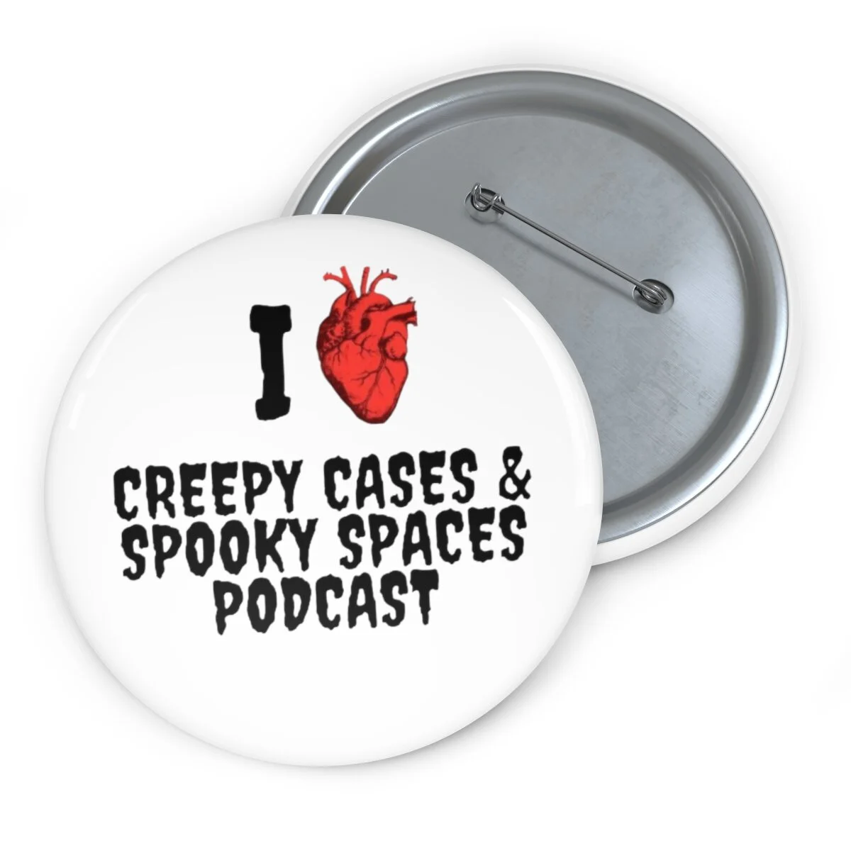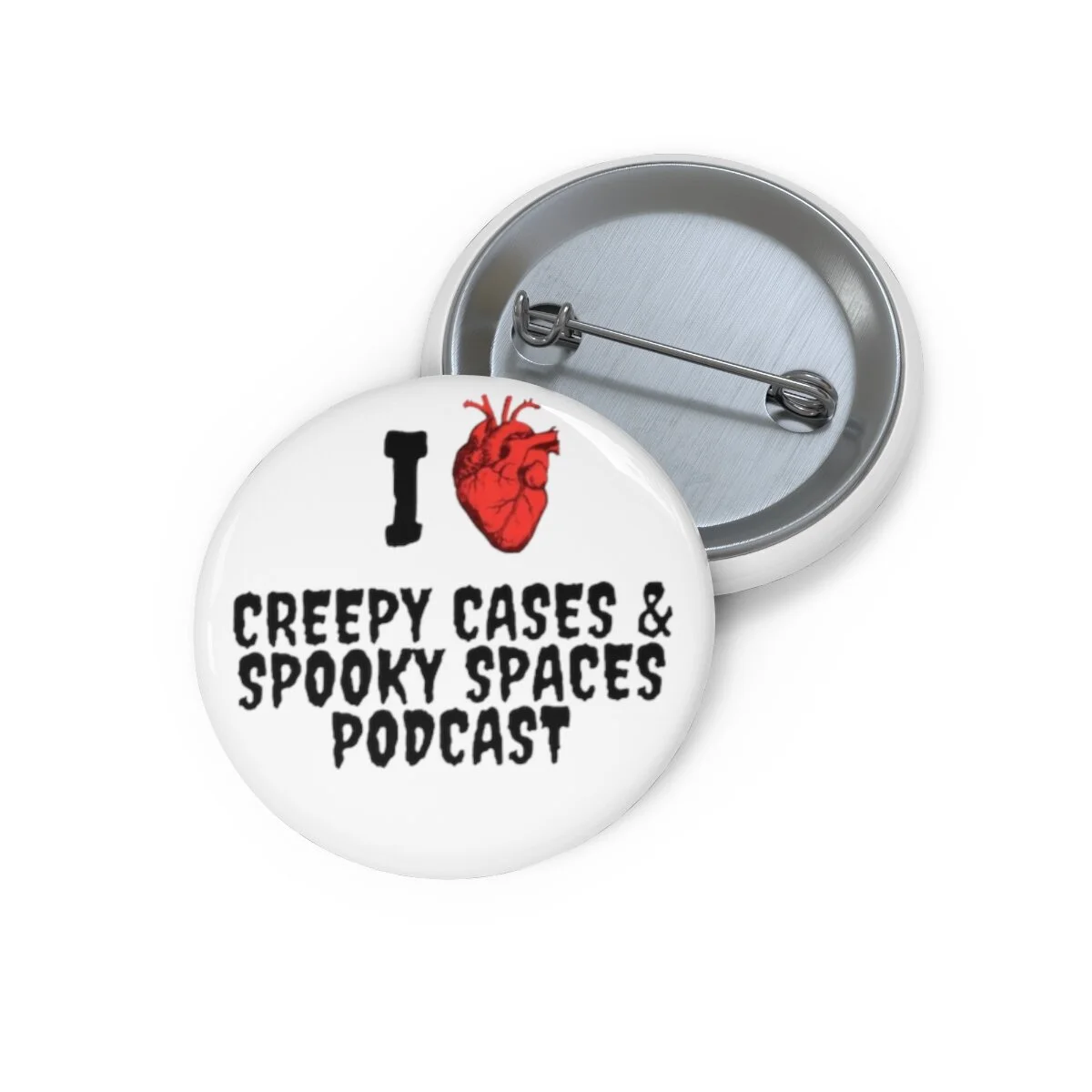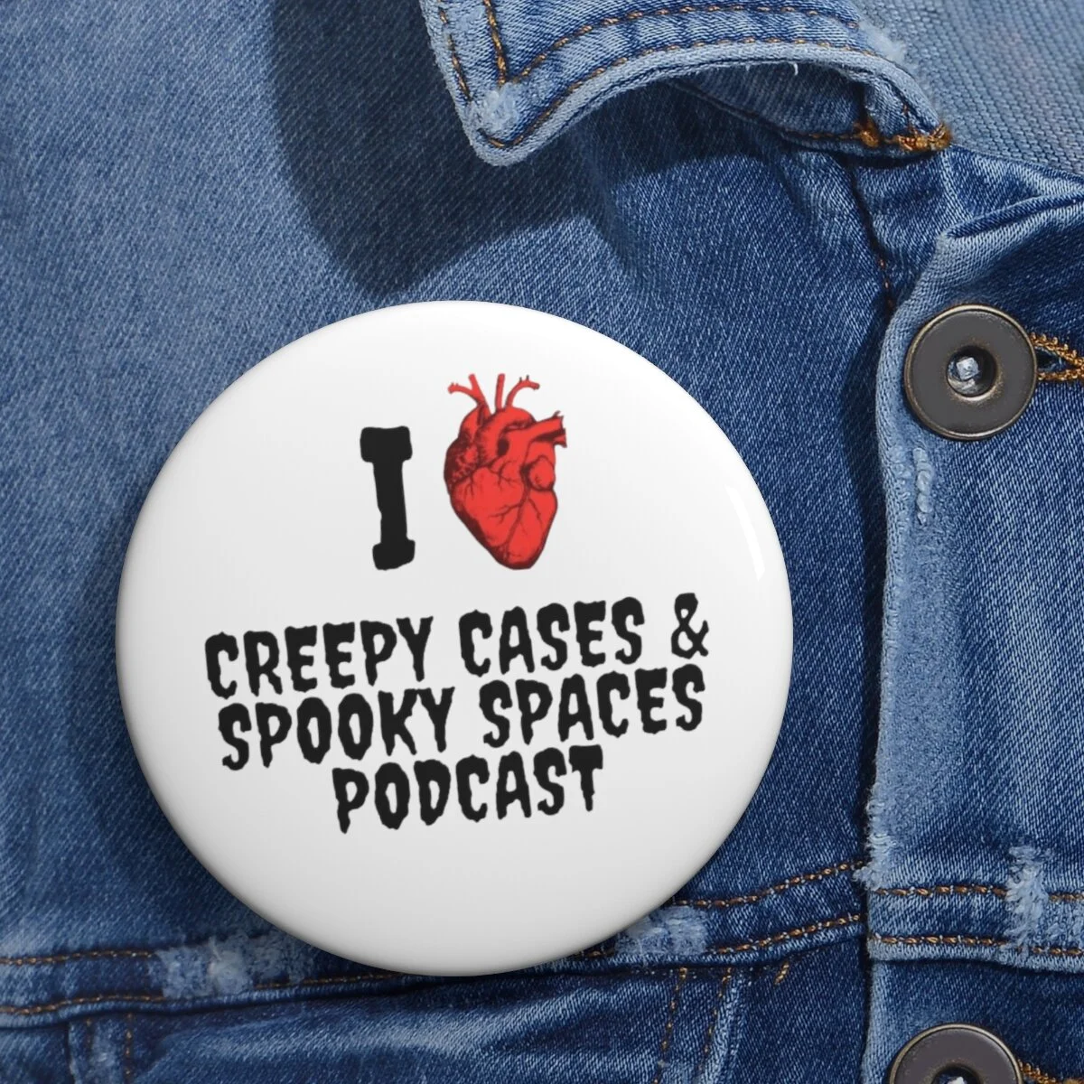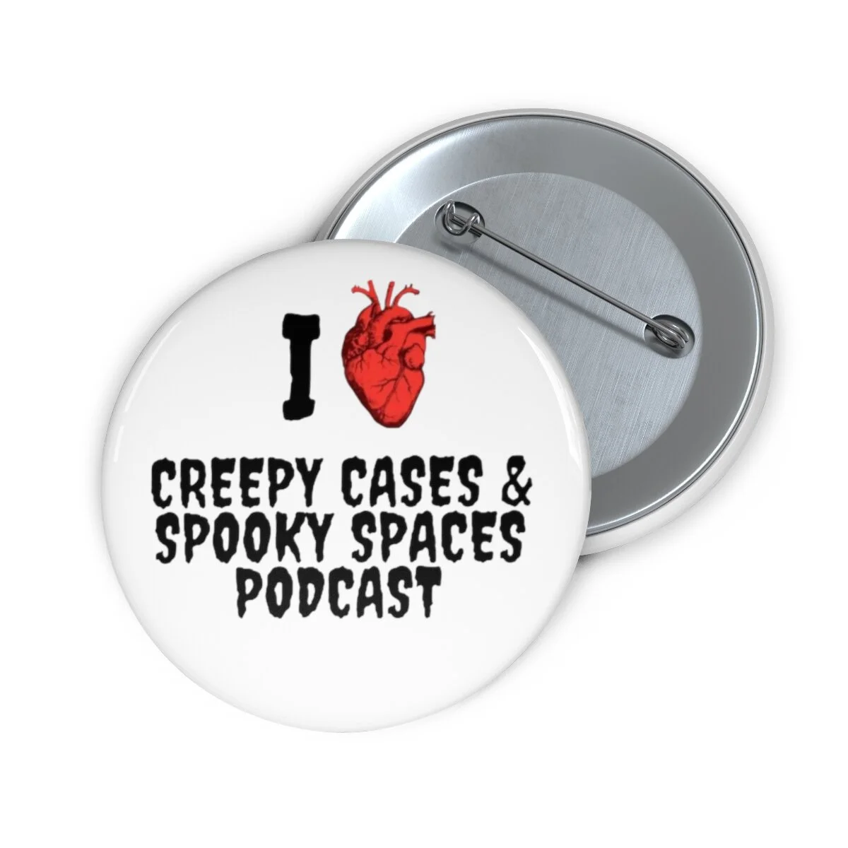 Creepy Cases & Spooky Spaces - Custom Pin Buttons - White